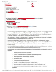 Sipas Halilit, ky email përmbante udhëzime nga Udhëheqësja e Zyrës Ligjore të RTK-së për të udhëzuar një subjekt privat mbi mënyrën e përgatitjes së aplikimit për RTK, pa diskutuar çështjen në asnjë mbledhje të menaxhmentit. Halili ka theksuar se ky veprim është një tentativë për të kaluar një kontratë pa u diskutuar dhe miratuar nga forumi më i lartë vendimmarrës, në shkelje të neneve të Ligjit për RTK, që kërkon që produksionet e pavarura të pranohen vetëm përmes një konkursi publik.
