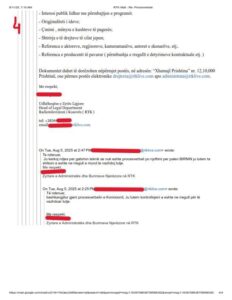 Në një postim të tij në rrjetet sociale, Halili ka zbuluar se ka pranuar një email që ishte dërguar gabimisht në adresën e tij, ku janë gjetur udhëzime që favorizojnë një subjekt privat për të marrë një kontratë, pa hapur asnjë garë publike, në shkelje të Ligjit për RTK.