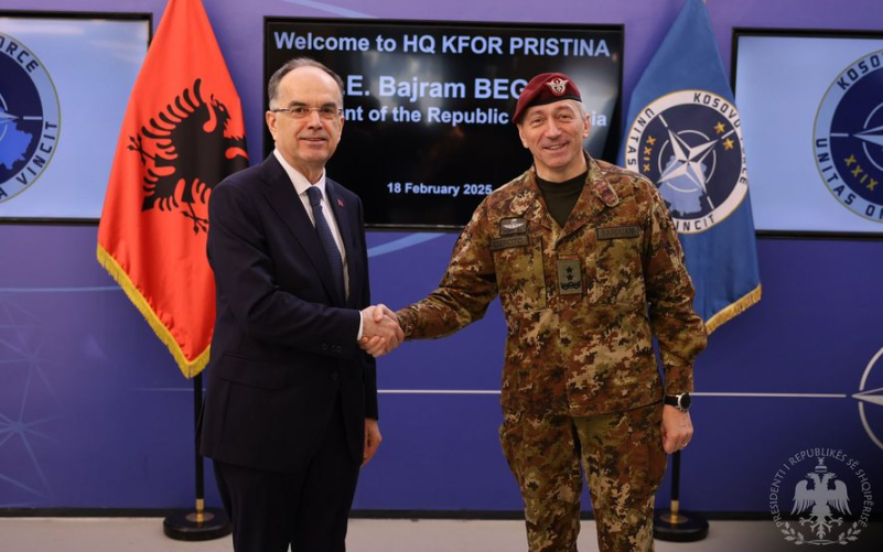Gjatë një vizite që zhvilloi në komandën e KFOR-it në Prishtinë, presidenti i Shqipërisë, Bajram Begaj u takua me komandantin e këtij misioni, gjeneralmajor Enrico Barduanin dhe efektivët shqiptarë që shërbejnë aty.