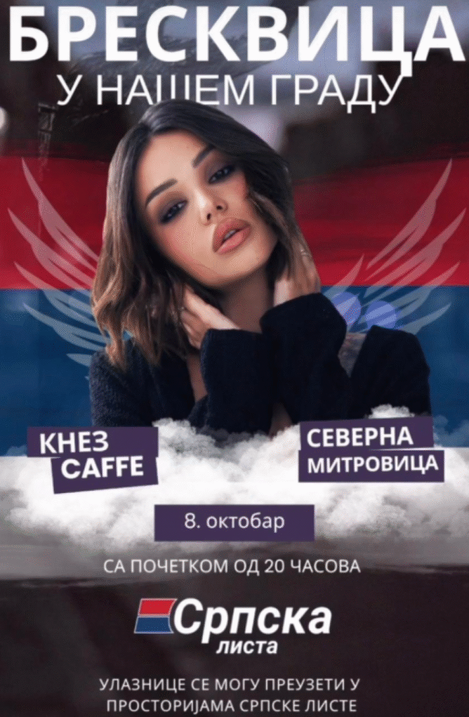 Një nga këto ngjarje është koncerti i paralajmëruar për datën 8 tetor në Mitrovicën e Veriut, ku do të performojë këngëtarja Angjella Ignjatoviq e njohur si ‘Breskvica’, një nga interpretueset e këngës shumë të kontestuar “Gnezdo orlovo” (Foleja e shqiponjës) – një këngë që u propozua të përfaqësojë Serbinë në Eurovision 2024, por që përmban mesazhe të koduara për rikthimin e Serbisë në Kosovë dhe përkrahje të narrativës së gjenocidit të ushtruar ndaj shqiptarëve gjatë luftës së fundit.