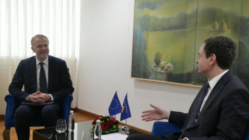 “Kryeministri në detyrë i Republikës së Kosovës, Albin Kurti, pret në takim shefin e Zyrës së BE-së në Kosovë, ambasadorin Aivo Orav. Ambasadori Orav do t’i dorëzojë kryeministrit Kurti Raportin për Vendin 2025 për Kosovën, nga Komisioni Evropian”, thuhet në njoftim.