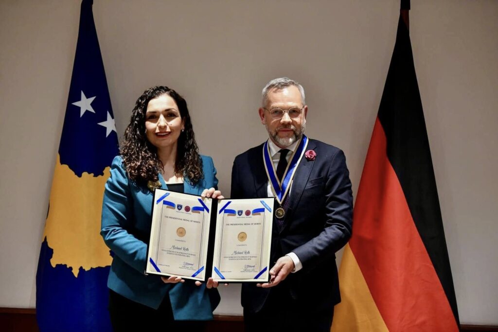 Kryetari i Komisionit për Punë të Jashtme në Bundestagun gjerman, Michael Roth është dekoruar nga presidentja Osmani me Medaljen Presidenciale të Meritave.