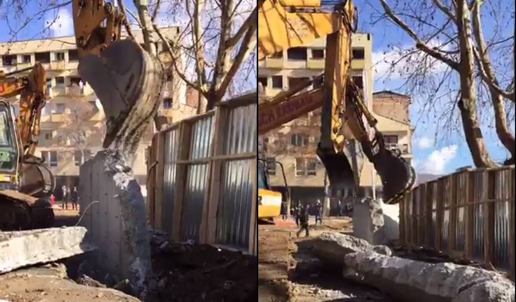 Dy ekskavatorëve u është dashur vetëm një orë për ta rrënuar murin e ndërtuar në Mitrovicën e veriut.