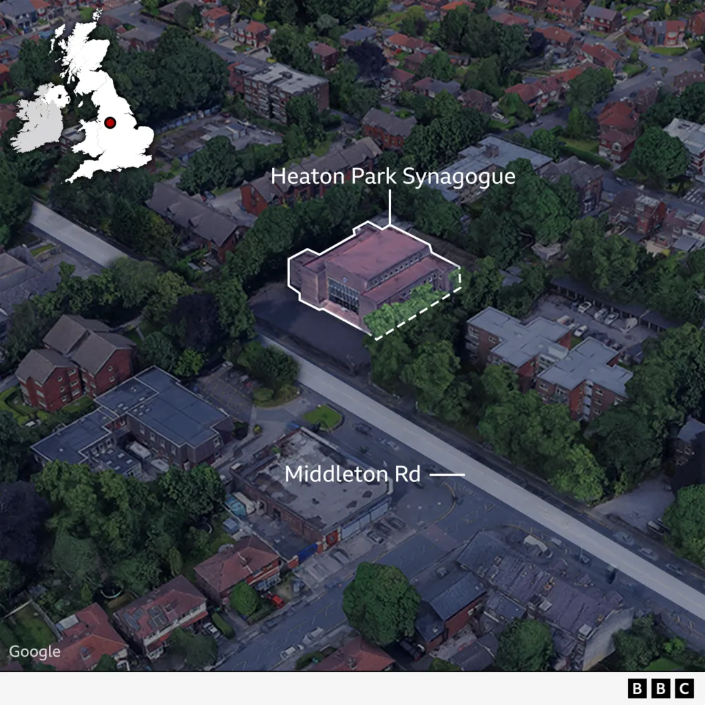 Incidenti ndodhi në Sinagogën e Kongregacionit Hebraik të Heaton Park në zonën Crumpsall në veri të Mançesterit. Është një zonë me një komunitet të madh hebre, rreth 6 km nga qendra e qytetit.