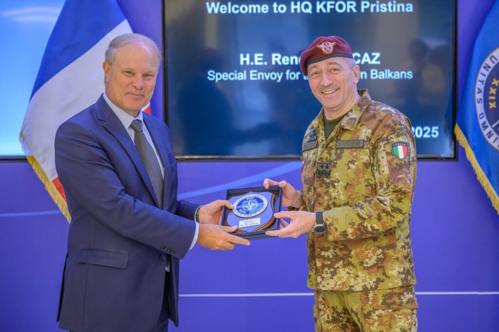 Komandanti i misionit të KFOR-it, gjeneralmajor Enrico Barduani, ka pritur në selinë e KFOR-it në Prishtinë të dërguarin special të Francës për Ballkanin Perëndimor, Rene Troccaz, i cili ishte i shoqëruar nga ambasadori i Francës në Kosovë, Olivier Guerot.
