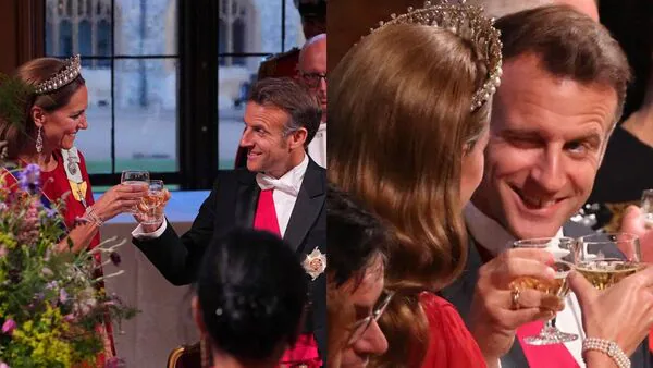 Kate Middleton dukej mahnitëse në banketin shtetëror të mbajtur në Kështjellën Windsor. Megjithatë, ishte ndërveprimi i saj i papritur me Presidentin francez Emmanuel Macron që tani ka tërhequr vëmendjen e të gjithëve. Të dyja u panë duke tingëlluar gotat, të ulura pranë njëri-tjetrit. Macron madje e ndihmoi duke tërhequr karrigen e saj dhe duke pritur që ajo të ulej e para.