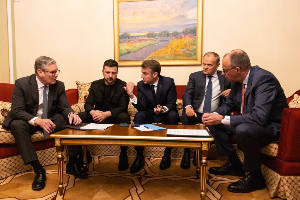 Udhëheqësit e Francës, Britanisë, Gjermanisë dhe Italisë biseduan në telefon me Presidentin e SHBA-së Donald Trump të dielën, përpara bisedimeve të tij të sotme me Presidentin rus Vladimir Putin në një përpjekje për t’i dhënë fund konfliktit në Ukrainë, tha qeveria britanike.