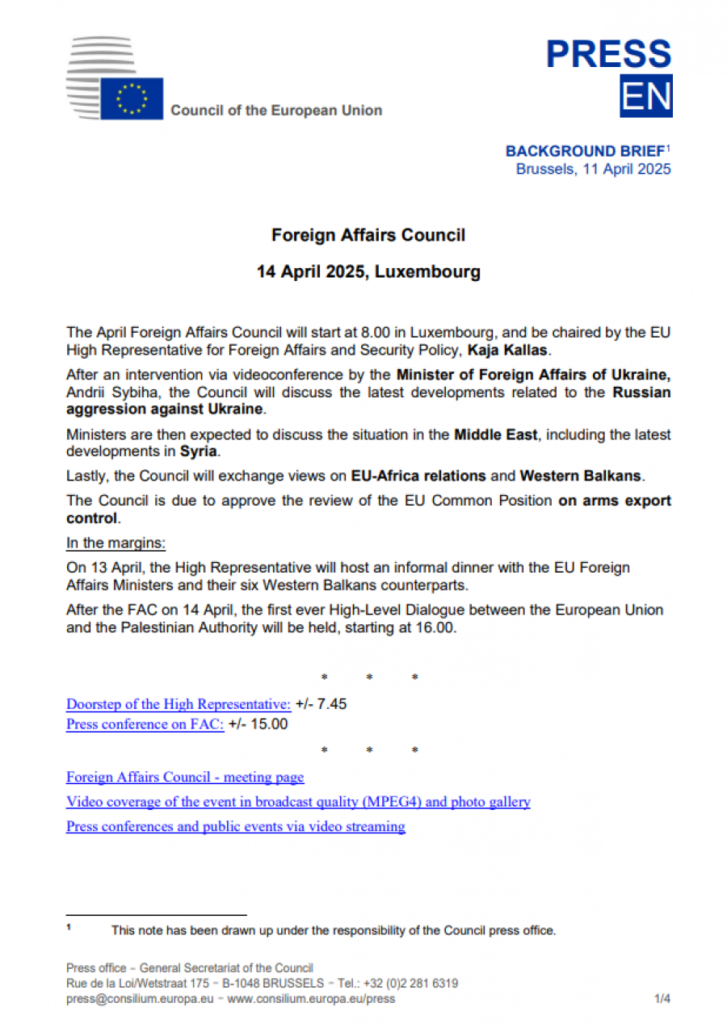 Shefja e politikës së jashtme të BE-së, Kaja Kallas në takimin e sotëm të Këshillit të Ministrave të Jashtëm të BE-së, do të informojë lidhur me procesin e dialogut Kosovë-Serbi.