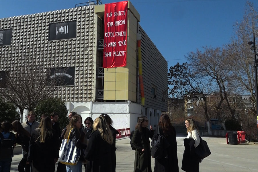 “Kur shteti s’na mbron, revoltohemi” shkruan në banerin që kolektivi “Marshojmë s’festojmë” ka lëshuar sot nga ndërtesa e “Reporting House”, për çka u bë thirrje për protestë më 8 mars. Derisa motivi kryesor i kësaj proteste sipas këtij kolektivi është lufta kundër dhunës.