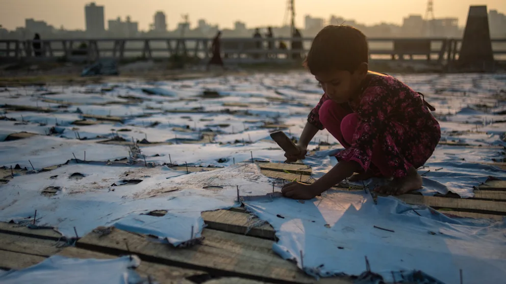 Një vajzë punon në deponinë e mbeturinave Halishahar në Chittagong (Bangladesh) në kushte jashtëzakonisht të rrezikshme.