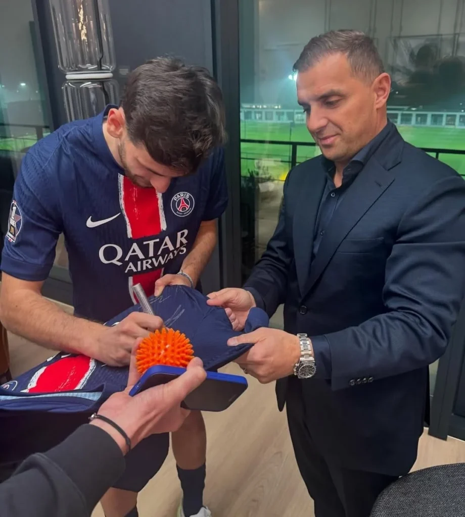 Me fanellën e PSG-s gjeorgjiani pozon së bashku me Qormemetin.