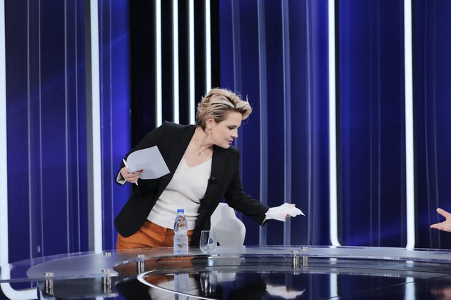Sapo hyri në studio, Kryemadhi nisi të dezinfektonte karrigen ku do të ulej. Kjo sepse në këtë karrige ishte ulur në pjesën e parë të emisionit Lulzim Basha.