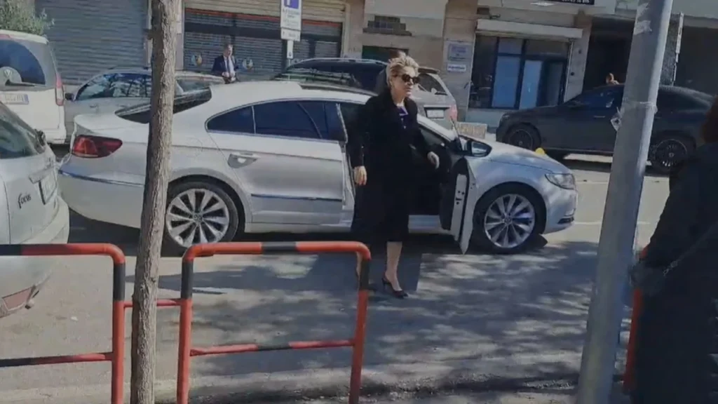 Kryemadhi shihet duke dalë nga automjeti e buzëqeshur. Më pas përshëndet gazetarët, por nuk prononcohet.