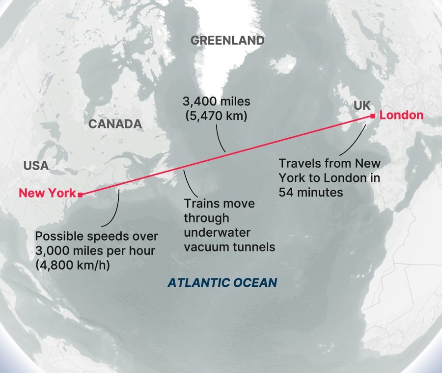 Në një kohë ku mënyra më e shpejtë për të udhëtuar drejt Amerikës është ajri dhe fluturimet zgjasin 8 orë, një tren që mund udhëtonte në një tunel nënujor me shpejtësi deri në 5000 km/h do të arrinte në Amerikë për 54 minuta.