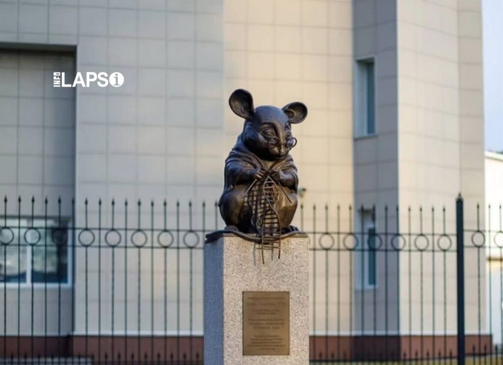Në Novosibirsk të Rusisë, një statujë bronzi e një miu që thur një fije ADN-je qëndron jashtë Institutit të Citologjisë dhe Gjenetikës, e përuruar më 1 korrik 2013.
