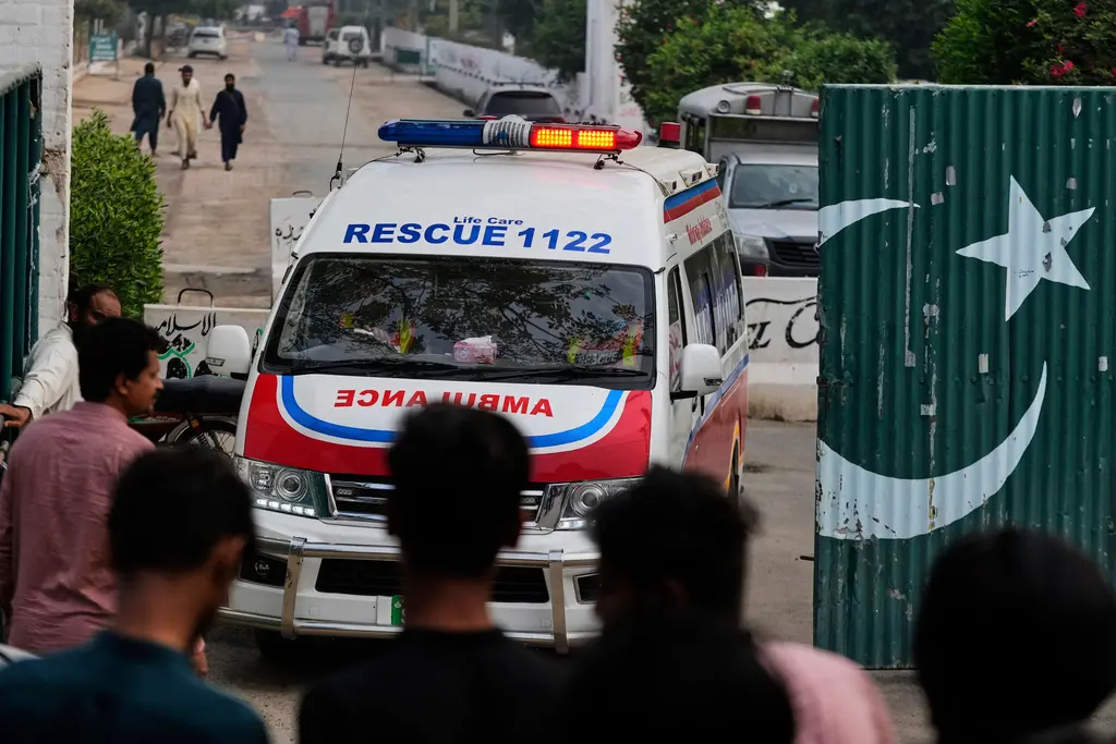 Ambulancat largohen nga një kompleks pranë vendit të një sulmi me raketa, në Muridke, një qytet në provincën Punjab të Pakistanit, më 7 maj 2025. KM Chaudary—AP