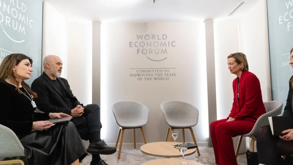 Kryeministri Edi Rama takoi Christine Grahn, kreun e Marrëdhënieve me Qeveritë dhe Politikën Publike të TikTokut për Europën gjatë pjesëmarrjes në Forumin Ekonomik Botëror në Davos.
