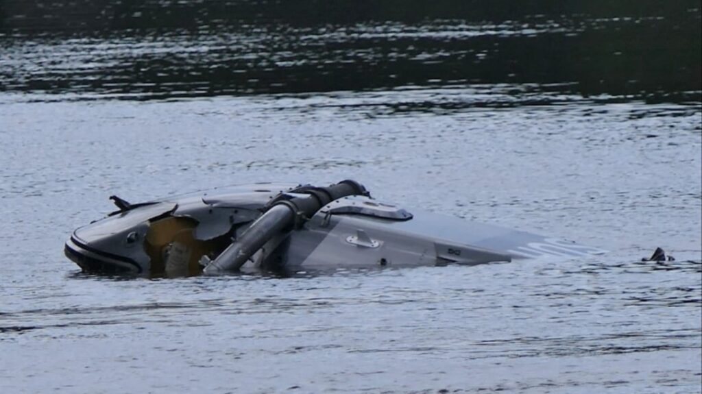 Mjeti, një EC-135 (Helikopterë Airbus), ishte zhdukur që nga mëngjesi i djeshëm. Policia tha se qytetarët që po lundronin me kajak vunë re mbeturina në lumë. Një digë u ngrit në një pjesë të lumit për të kufizuar ndotjen dhe rrjedhjen e vajgurit.