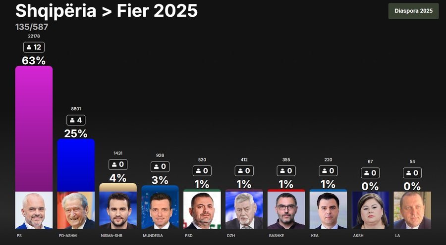 Deri tani, sipas të dhënave të publikuara nga Komisioni Qendror i Zgjedhjeve, janë numëruar votat në 1477 kuti nga 5225 në total.