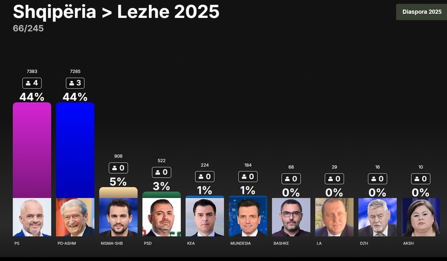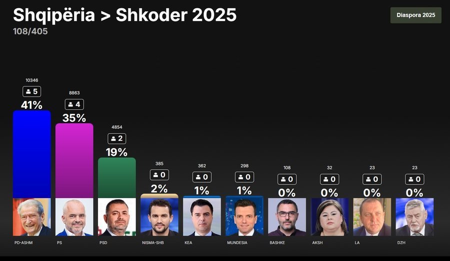 Deri tani, PS-ja ka arritur të marrë më shumë deputet në 10 qarqe të vendit, vetëm në Shkodër dhe në Kukës, PD-ja është në avantazh.