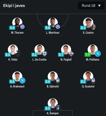 Rezultatet mjaft të rëndësishme janë marrë nga ekipet, ndërsa kanë shkëlqyer edhe disa nga futbollistët shqiptarë. Kështu Berat Gjimshiti pas paraqitjet fantastike në sfidën ndaj Romës, në fitoren 1-0 të Atalantës është zgjedhur nga “SofaScore” në repartin e mbrojtjes të formacionit të javës së Serie A. Në përfundim të asaj ndeshjeje ai mori edhe trofeun e lojtarit të takimit. Por jo vetëm kaq, në këtë repart ndodhet edhe një tjetër shqiptar.