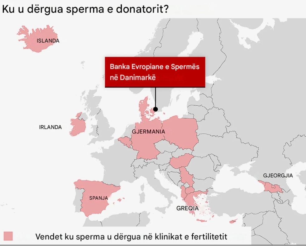 Hetimi është kryer nga 14 transmetues publikë europianë, përfshirë BBC, dhe ka zbuluar se sperma e dhuruesit është përdorur në 67 klinika fertiliteti në vende si Danimarka, Belgjika, Spanja, Gjermania, Greqia, Polonia, Irlanda, Maqedonia e Veriut, Serbia, Hungaria, Gjeorgjia, Islanda, Qiproja dhe Shqipëria.