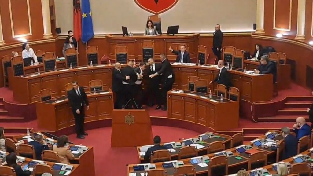U desh ndërhyrja e Gardës për të tërhequr Nokën, ndërsa kryetarja e Kuvendit Elisa Spiropali ndërpreu seancën dhe e përjashtoi Nokën nga Kuvendi.