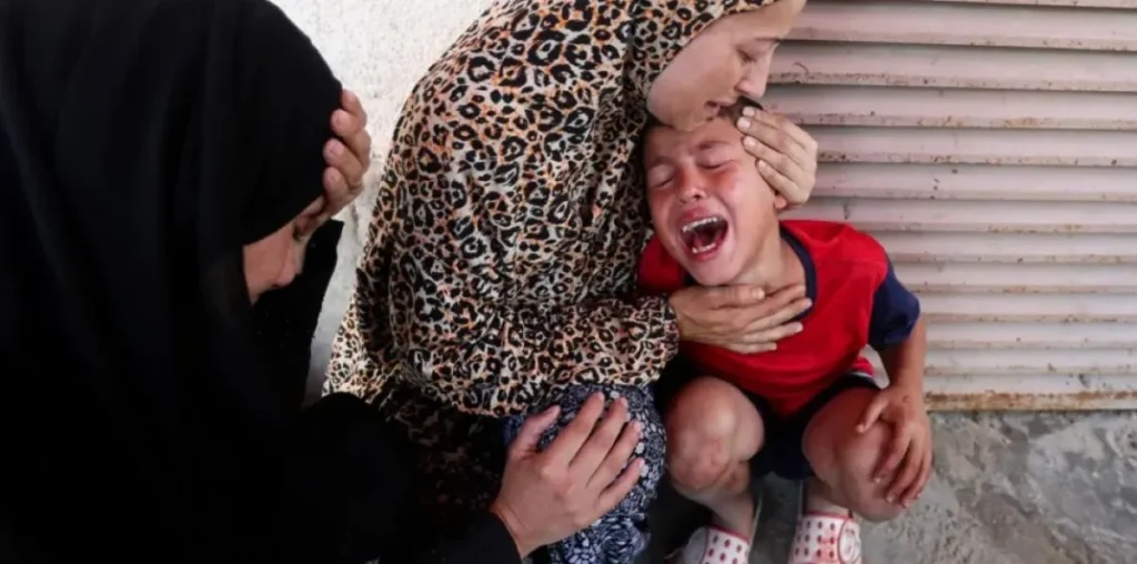 Në morgun e spitalit të afërt al-Aksa, të afërmit e të vrarëve qanin ndërsa mbështillnin fëmijët e vdekur me qese të bardha dhe qese trupash para se të kryenin lutjet e varrimit.