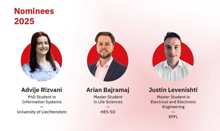 Albanian Engineering of Switzerland ka prezantuar tre të nominuarit përfundimtarë për Çmimin e Ekselencës Akademike 2025. Ky çmim prestigjioz synon të vlerësojë arritjet në fushën e kërkimit, inovacionit dhe kontributet e veçanta të studentëve shqiptarë në Zvicër.