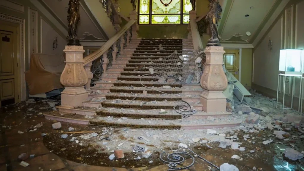 Fotot e postuara në internet nga Kiper dhe kryetari i bashkisë së Odesës, Hennady Trukhanov, tregonin hollin dhe pjesët e tjera të Hotel Bristol, një pikë referimi luksoze e ndërtuar në fund të shekullit të 19-të, e kthyer në gërmadha.